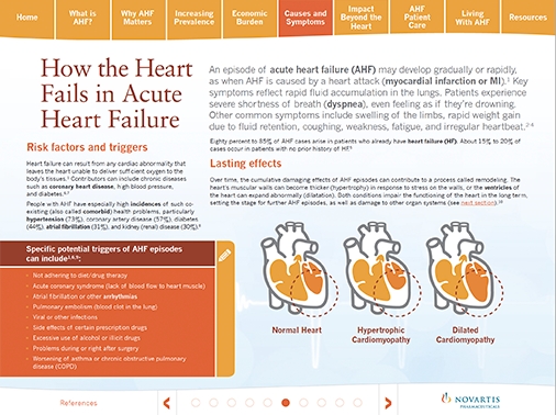 A concise, interactive reference guide to Acute Heart Failure for members of the media. AHF is a significant and growing public health concern. This guide is intended to provide the US media covering health and medecine with accurate information and data drawn from the most recent scientific literature.